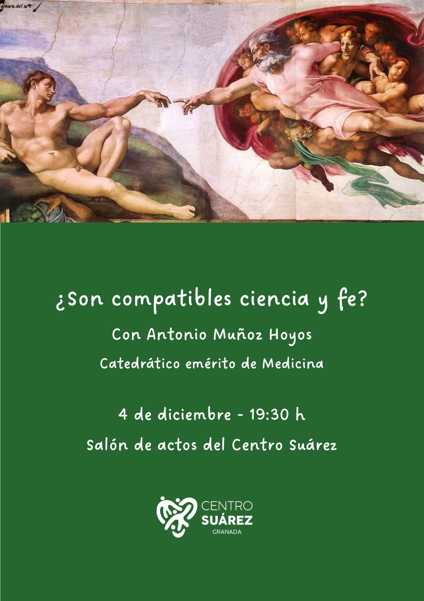 El jueves 4 de diciembre a las 19:30, en el salón de actos del Centro Suárez, tendremos con nosotros a Antonio Muñoz Hoyos, catedrático emérito de Medicina, que nos ofrecerá la conferencia "¿Son compatibles ciencia y fe?".